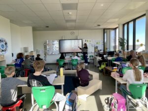 Die Medienpädagogin Frau Stingl beeindruckte uns mit Fakten und regte die Kinder der Giraffen- und Fledermausklasse geschickt dazu an, über ihr eigenes Medienverhalten nachzudenken. Dabei ging es vor allem um Selbstreflexion und nicht um eine Bewertung von außen.