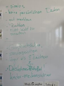 Im Rückblick konnten sich die Kinder an viele Inhalte erinnern. Wir lernten beispielsweise, was Cybergrooming ist und wie wir uns schützen können. Wir lernten auch, wie ein sicheres Passwort bzw. ein sicherer „Pass-Satz” erstellt wird und wie wir herausfinden können, wie lange ein Computer benötigen würde, um unser Passwort zu knacken. Für das fiktive Passwort der Fledermausklasse bräuchte ein Computer 195 Quadrillionen Jahre. Unter folgendem Link können Passwörter geprüft werden: https://checkdeinpasswort.de/